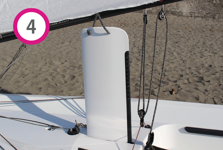 ブームタイとセールサイズの調整延長ロープがセールに付いているのでセールサイズを変更してもコントロールの調整が不要です。また、ブームエンドには、デフォルトでトリムゲージがプリントされており、スムーズかつ確実なトリムが可能になっています。