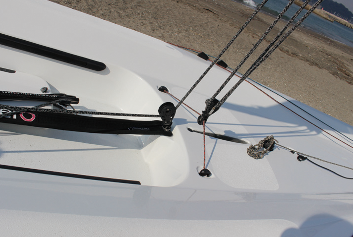 カニンガムとアウトホールは、両サイドデッキがハイクアウトをしながら調整出来るエンドレスシステムが採用されています。